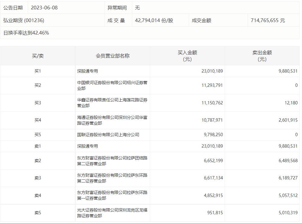 6月8日,弘业期货今日涨4.97%,龙虎榜数据显示,上榜营业部席位全天成交1.2亿元,占当日总成交金额比例为16.84%。其中,买入金额为8511.5万元,卖出金额为3524.18万元,合计净买入4987.33万元。