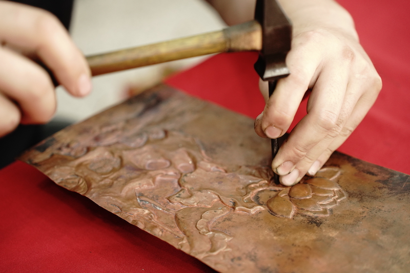 青浦区博物馆大厅的非遗展示体验区内,来自青浦的水印版画、江南丝竹,吴江区的蚕丝被制作技艺、金属凿刻,嘉善县的西塘八珍糕制作技艺、传统纽扣制作技艺(盘扣)让观众“零距离”接触体验非遗项目。现场还开设青浦船拳元宇宙体验项目,让参观者在虚拟世界里学习青浦船拳。