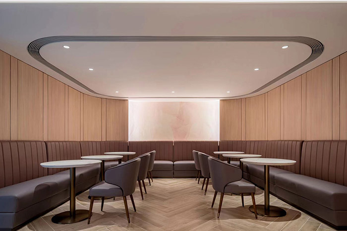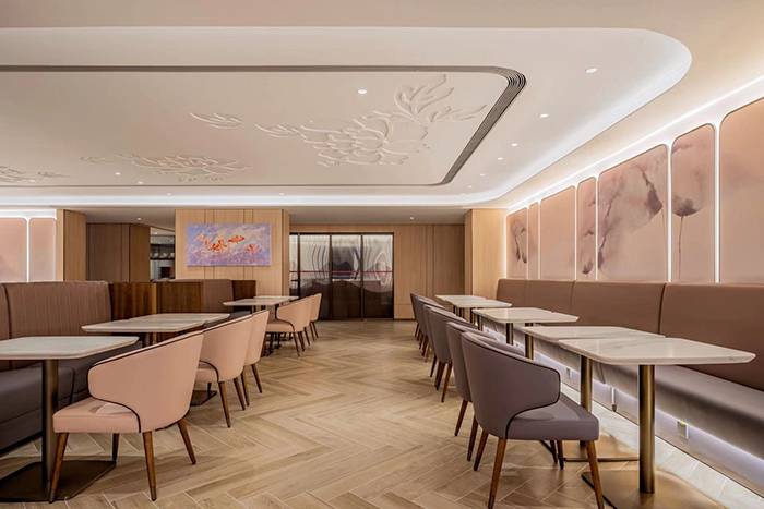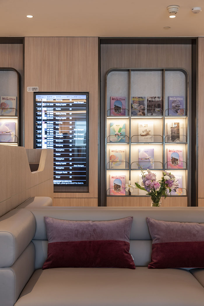 在“似锦”贵宾室的空间设计上,由香港团队陈德坚设计事务所操刀,整体风格贯彻了吉祥航空“梦旅生花”品牌服务理念,以低饱和度的粉紫、淡棕色系为主色调,与现有波音787梦想飞机及A320neo系列机队的莫兰迪色系客舱相呼应,辅以遍布各处的“繁花似锦”牡丹元素,展现精致大气的新中式格调,实现“梦旅生花”服务理念由空中延伸至地面的统一呈现。