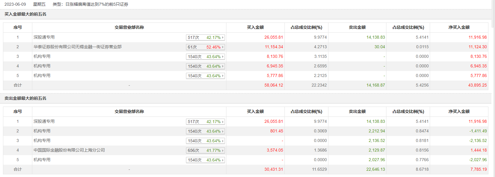 6月9日,沪电股份今日涨停,龙虎榜数据显示,上榜营业部席位全天成交8.51亿元,占当日总成交金额比例为32.59%。其中,买入金额为6.24亿元,卖出金额为2.27亿元,合计净买入3.98亿元。