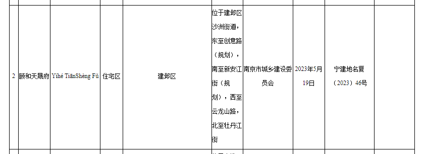 近日,据南京民政局发布的2023年地名命名公告(202307号)显示,河西中颐居G67项目备案名被曝光!定为【天晟府】!