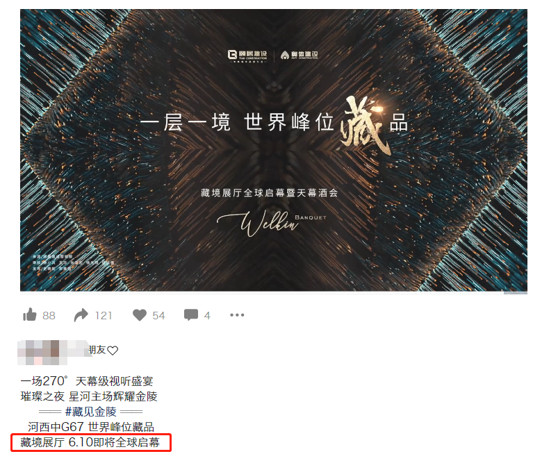 此外,据颐居建设官方视频号显示,项目将于明日(6月10日)在河西安达仕酒店31F行政酒廊展厅公开城市展厅。