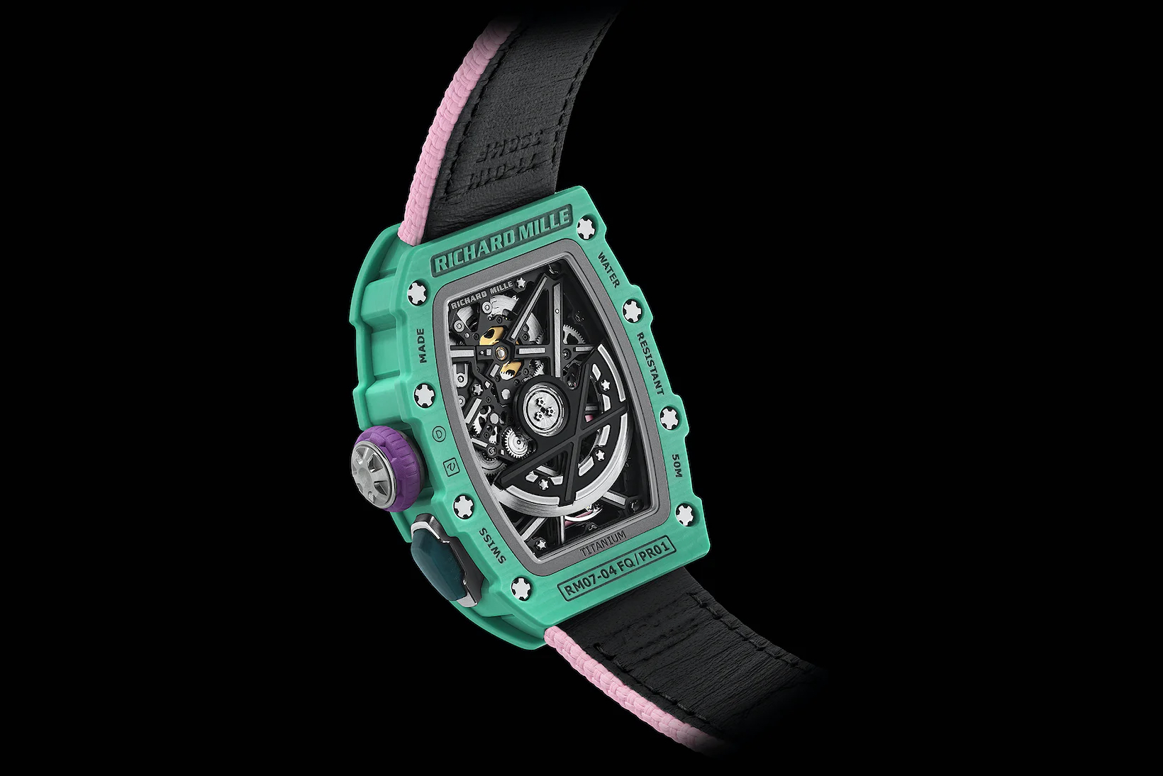 2023年2月,理查米尔推出了首款专门为女性运动员打造的RM 07-04自动上链运动腕表,以满足各类运动项目的限制条件。该腕表含表带的总重量仅有36克,共有6种不同配色的款式可供选择。