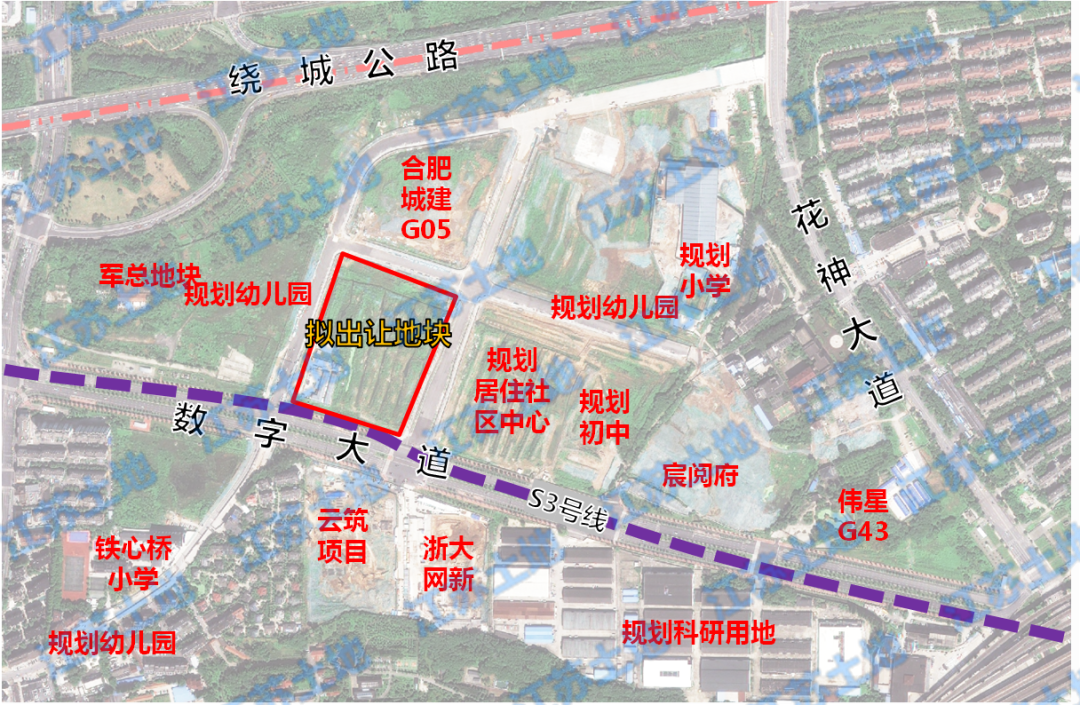 本地块十分方正,为数字大道东段十分优质的住宅用地,将接续雨花数字城土地市场的高热度。东侧规划建设小学、初中、幼儿园各一所,其中初中已开始建设。地块西南侧已建成铁心桥小学,西侧及西南侧还将规划建设两所幼儿园。