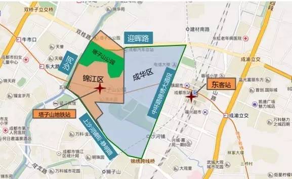 发展断裂、城市开发滞后的塔子山区域,还同时面临着区域内归属于锦江区与成华区的两个部分各自发展的窘迫局面。而新客站国际商旅城的系列规划也尚停留于纸面之上。