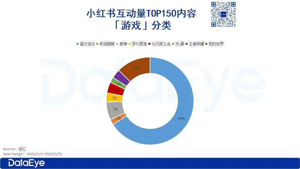 根据新红数据,今年以来互动量排行TOP150的小红书游戏内容: