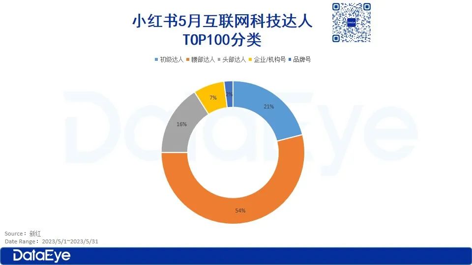 根据新红数据,5月互联网科技达人总榜TOP100数据显示: