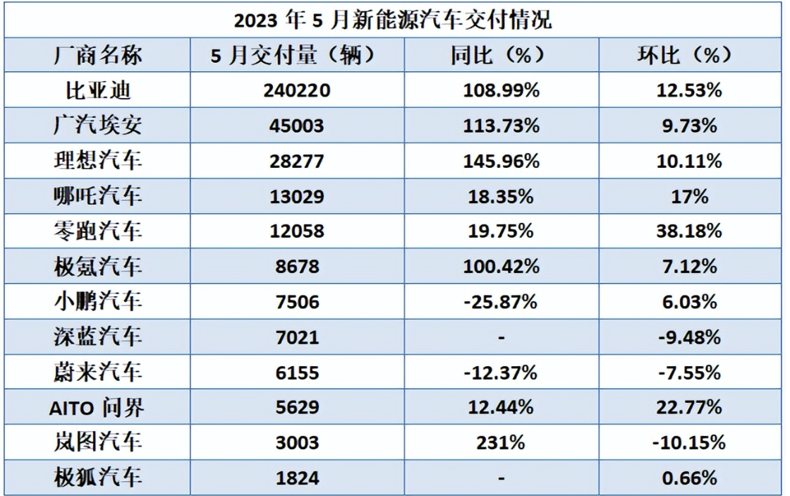 6月初,各大新能源车企公布了5月份的新车交付情况。整体来看,原本就“打得火热”的车市持续升温,多家车企月度销量环比涨幅超过10%,其中比亚迪更是拿出了超24万辆的“惊人表现”领跑市场。作为新势力的理想汽车,也打破单月销量记录,直逼3万辆。
