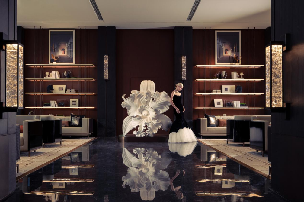 艺术门厅的“锦云-礼序”,以现代手法利用水晶装置打造极具视觉冲击力的“历史天书”,似乎在提醒我们十里秦淮才是书写金陵文脉的千年诗河;