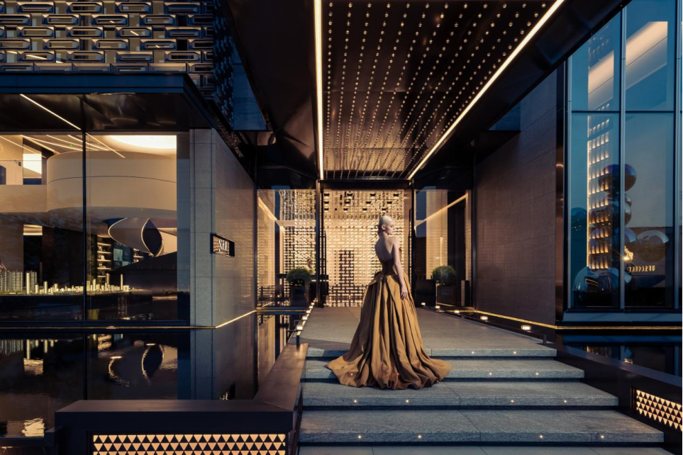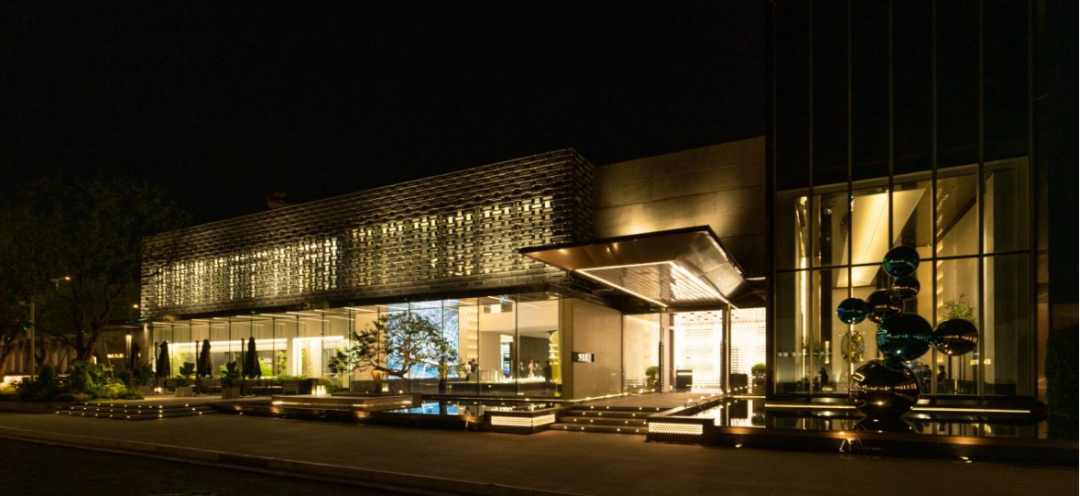 项目外立面选用蓝眼睛石材+铝板外立面+玻璃幕墙外立面,是南京首个蓝眼睛石材干挂的项目;项目以奢级度假酒店都会隐逸的设计哲学为核心思想,打造约4万㎡全体系东方森系度假景观;