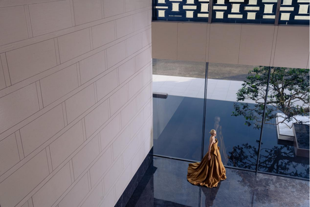 “凌云-叠空”,约10米挑高的艺术长廊,则是波澜壮阔2600米机场跑道公园的缩影;秦淮自古繁华源于水,“阅云-和鸣”左右两侧的水景排布由此而生;