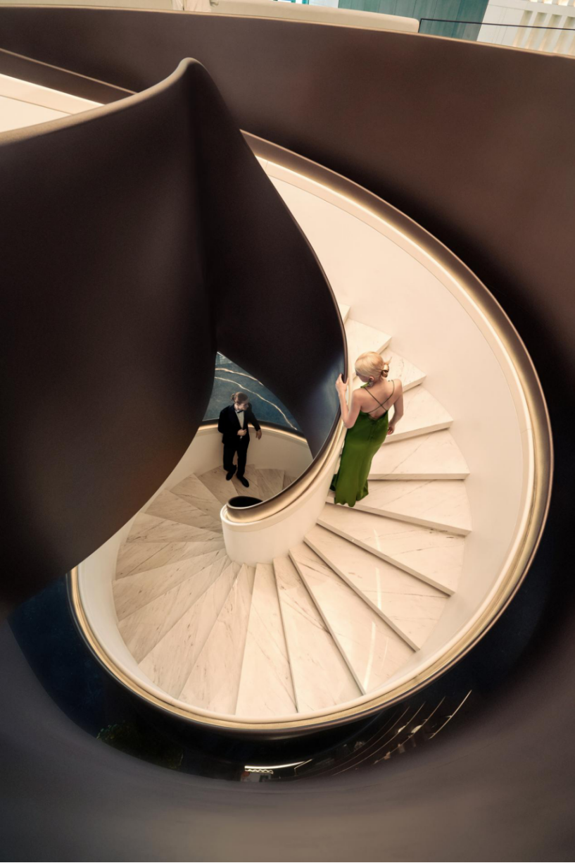 “登云-而飞”的旋转楼梯,就像一座时光雕塑,牵引着秦淮金茂府向上腾飞,传承过去,延绵未来。