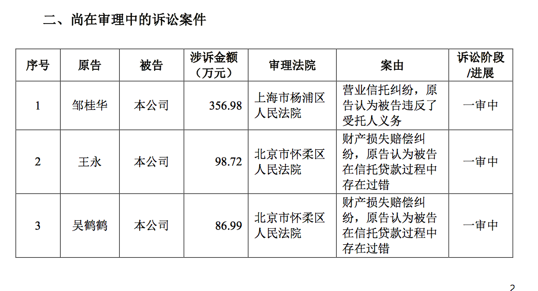 建元信托此前在回复监管问询函中也表示,自然人投资者作为原告的营业信托合同纠纷有48宗,除一宗为北京市朝阳区人民法院外,其余47宗均为上海杨浦区人民法院。