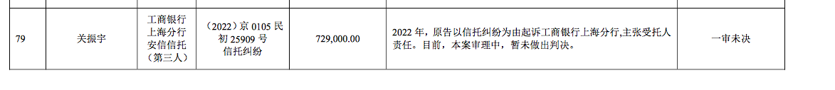 2022 年,原告以信托纠纷为由起诉工商银行上海分行,主张受托人 责任。目前,本案审理中,暂未做出判决。