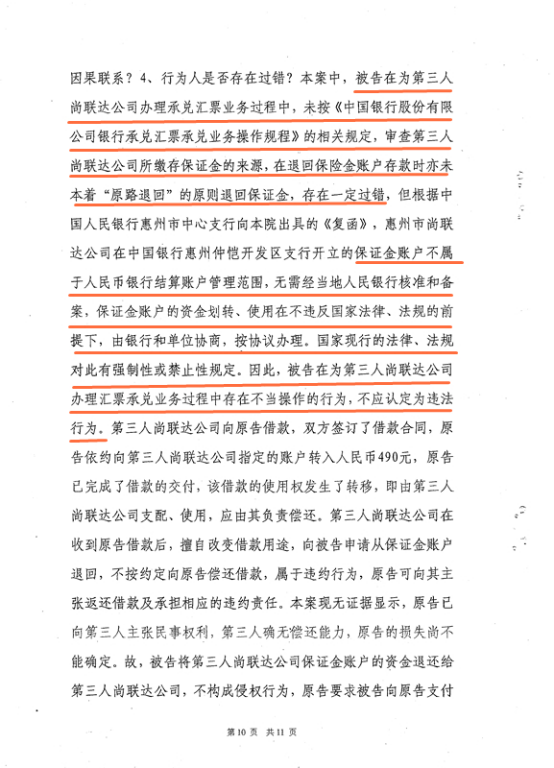北京时间记者就此联系中行惠州分行负责人,中行方表示,银行正常合规办理结算业务,此案相关责任认定及赔偿建议以司法判决为准。