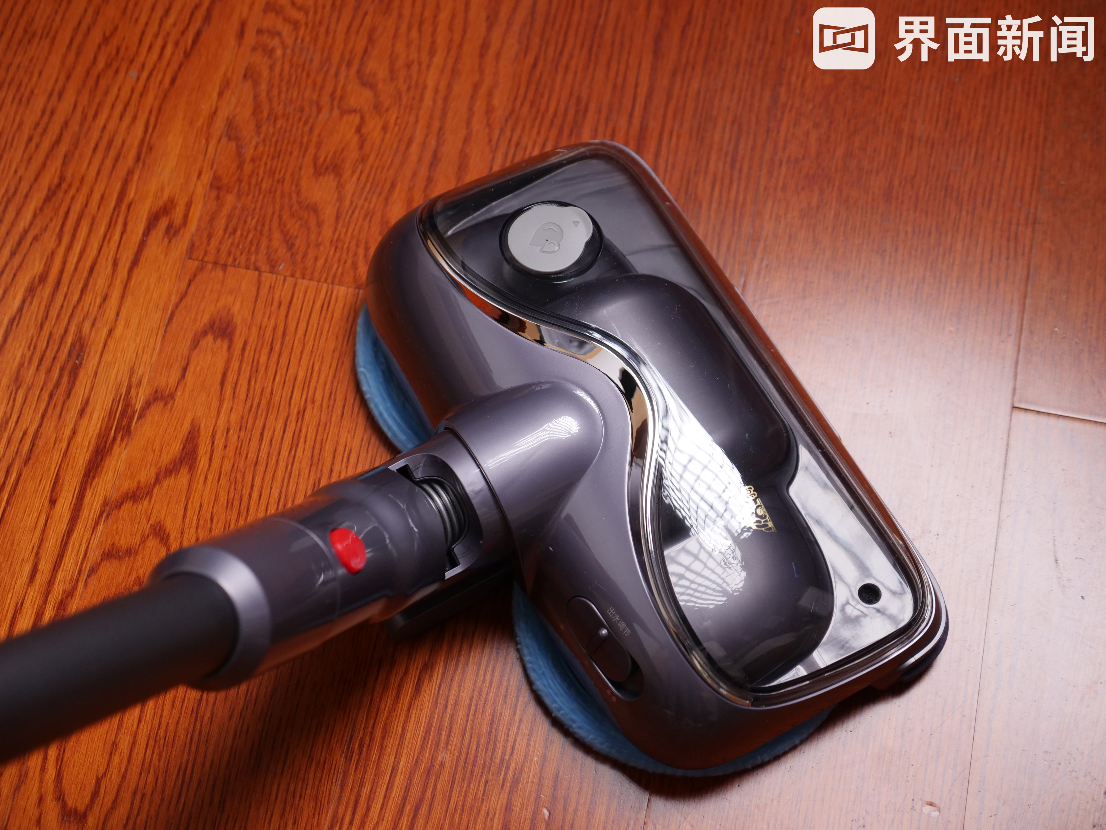 一个细节是,旋转擦地刷前置了一个LED探照灯,在打亮前方区域后,可帮助用户更好地清洁地面,例如对于较脏的区域,进行更细致的擦洗。