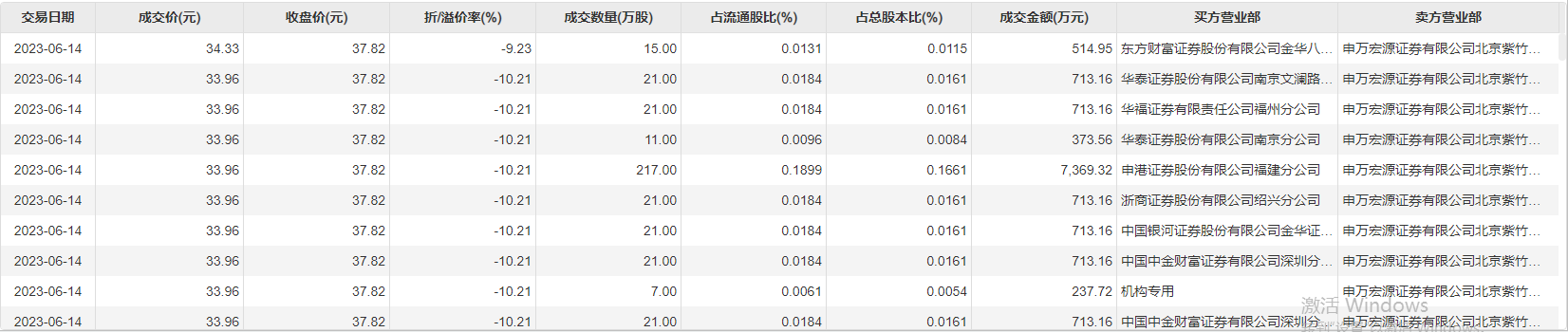 爱旭股份6月14日大宗交易成交571.95万股,成交额1.95亿元,占当日总成交额的15.94%,成交均价34.07元,较市场收盘价37.82元折价9.92%,其中最高成交价34.33元,最低成交价33.96元。