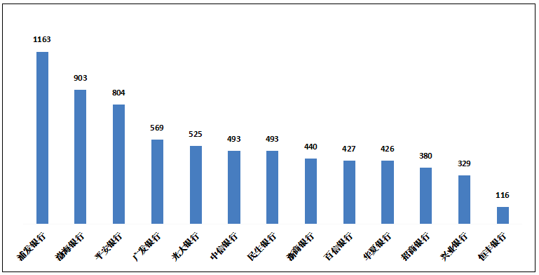 在股份行方面,平安银行、光大银行、兴业银行、浦发银行、民生银行和广发银行位列前六,投诉量均超过股份行信用卡业务投诉量中位数1844.5件,投诉量依次为3512件、2312件、2246件、2076件、2047件和1946件,占各家银行投诉总量的比重分别为75.5%、75.9%、80.6%、57.4%、72.3%和72.0%。