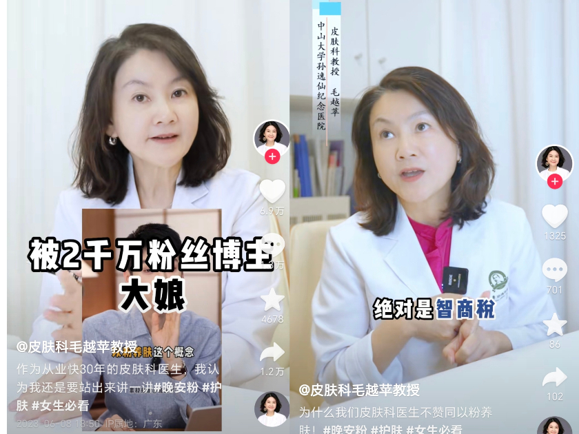 近日,头部美妆博主骆王宇和中山大学孙逸仙纪念医院皮肤科副主任毛越苹在“晚安粉”这一产品上产生了数轮争论。6月15日,界面新闻通过小红书平台就相关问题向骆王宇和毛越苹账号发去采访问题,截止发稿,暂未获得回复。