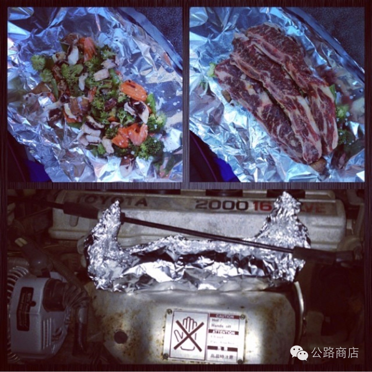 无论是汽油引擎还是柴油引擎都能用来烹饪,一定要使用优质的铝箔纸。保险起见,可用三层铝箔纸包裹食物。烹制时间依据车型不等。