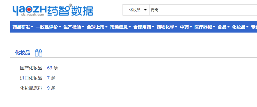 药智数据显示,目前国产化妆品仅有63条记录,进口化妆品7条,化妆品原料9条。尽管青蒿已闻名遐迩,但是消费者认知更多地停留在其药用价值上,而在化妆品的运用上,并未占领消费者心智。青蒿护肤道阻且长。