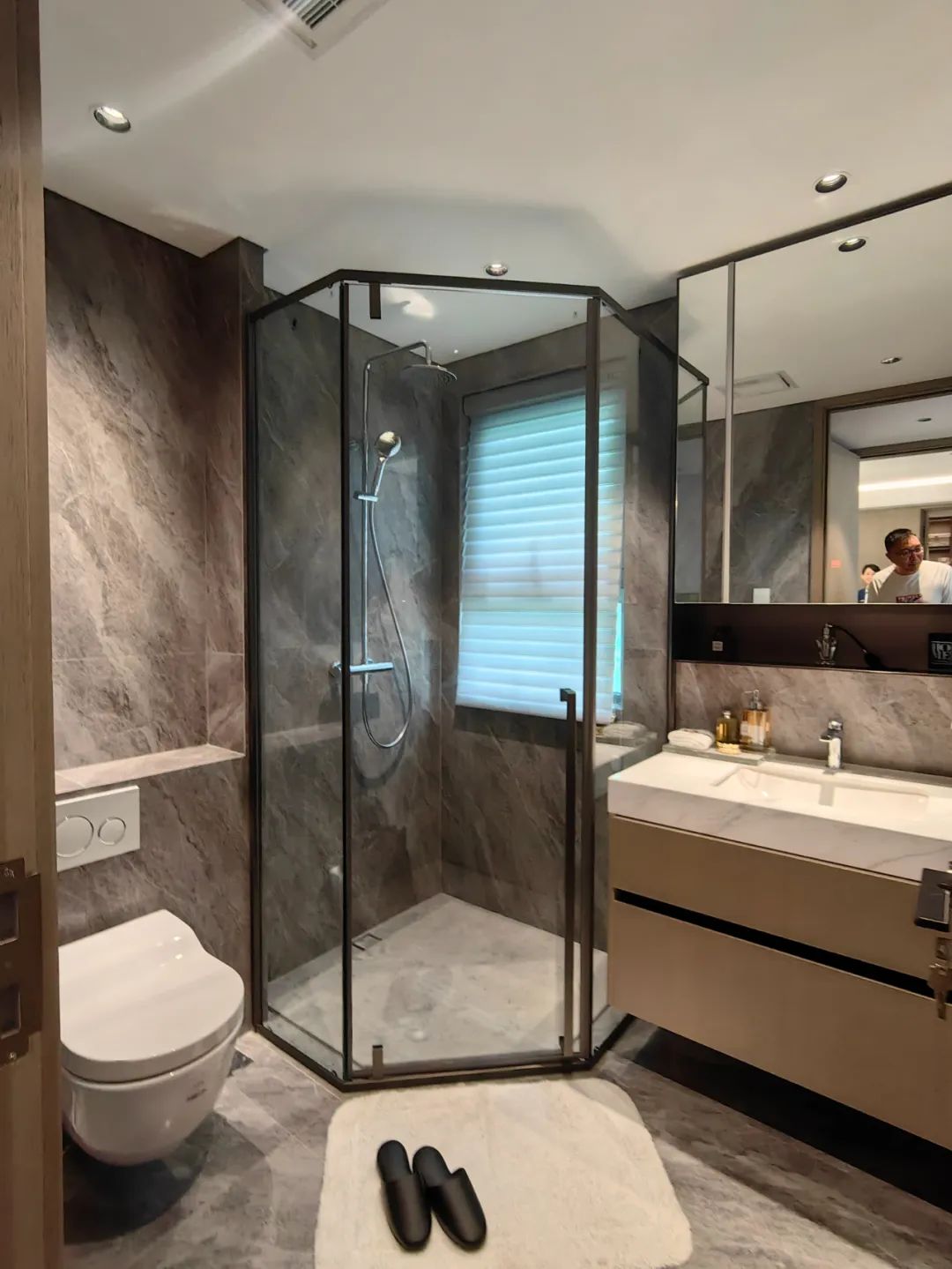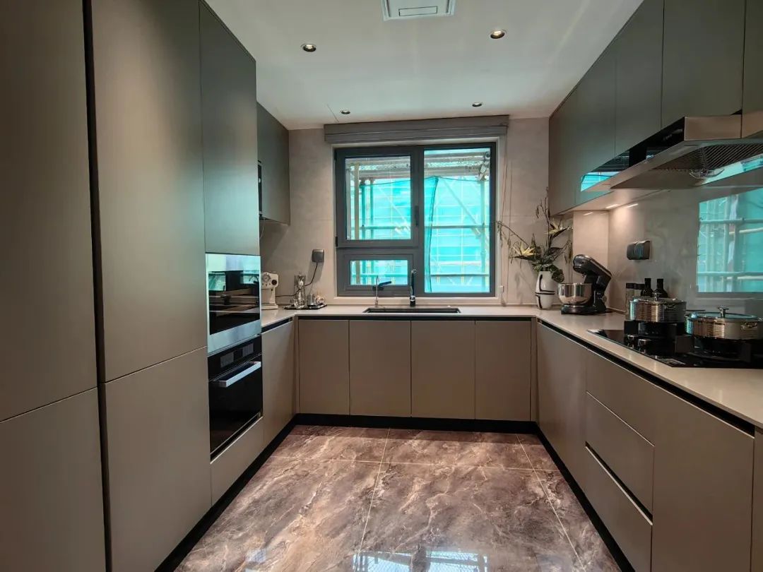 大金的中央空调、狄耐克的新风、威能的地暖锅炉、全屋ABB开关插座面板、博洛尼一体式的橱柜设计、博世厨电三件套(灶具、油烟机、洗碗机)、玫瑰岛定制移门、劳芬的台盆、马桶(隐藏水箱+面板瑞士吉博力或恩仕)、捷仕五金件……