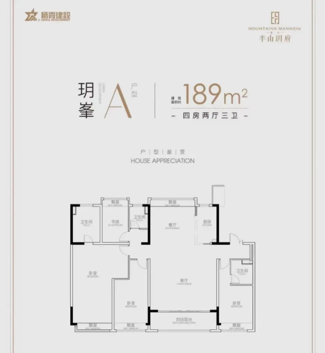 星叶半山玥府打造建面约127-189㎡全系四房大宅,保证了业主圈层的纯粹性,户户标配南向观景阳台。