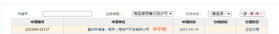 据南京市住房保障和房产局显示,河西青奥滨江板块的豪宅项目-中宁府正在申领销许。