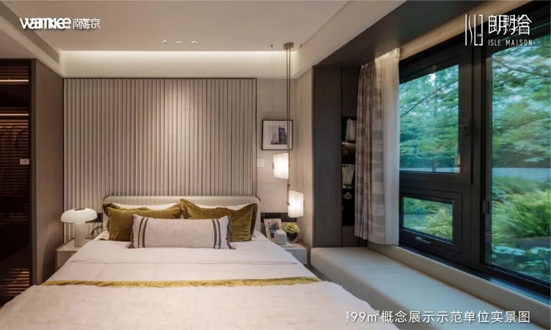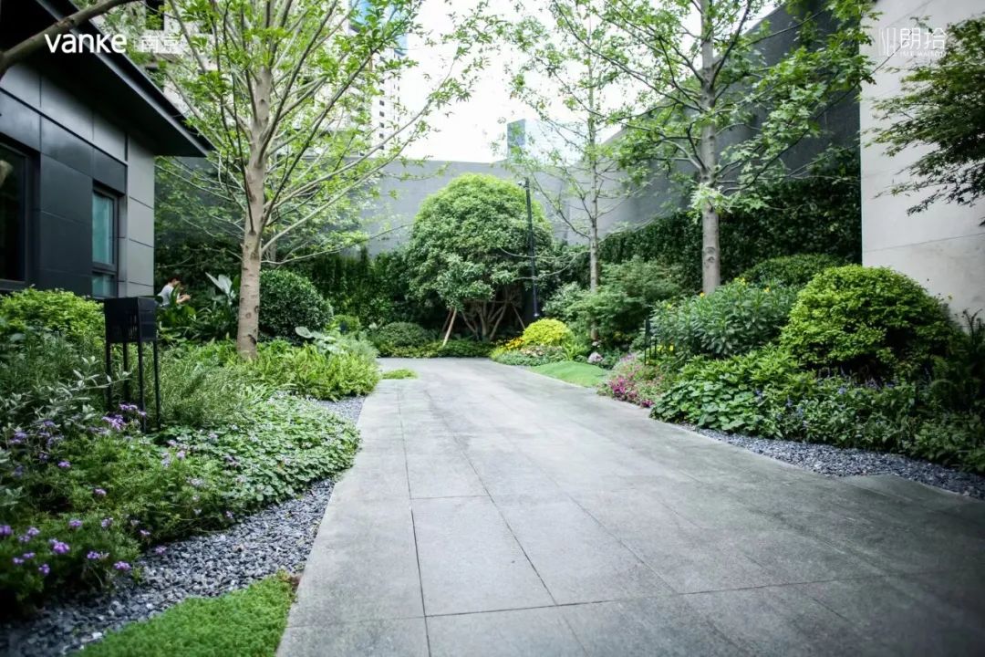 景观上,用树、绿篱、草坪等自然元素,把空间围合出尺度感,呈现质感的高雅,归家动线上透过植物的穿插、叠水的构景来模拟自然借此打造了林溪水岸,伴随漫水汀步走在其中就像走在山间泉边。