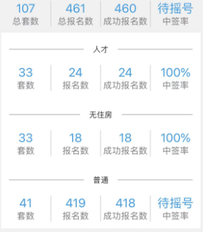 5月26日,项目首领1、6号楼销许,共107套房源,当时共吸引460人报名,综合中签率23.2%,其中普通号中签率更是低至9.8%,平均10人抢一套。