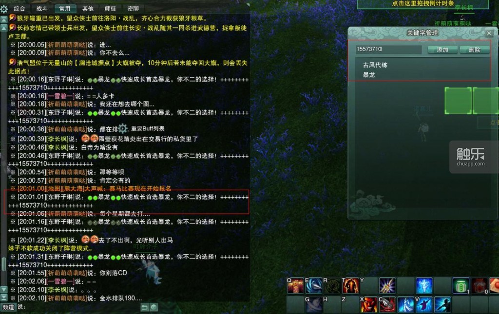 (自由发言的聊天频道会有广告刷屏问题)