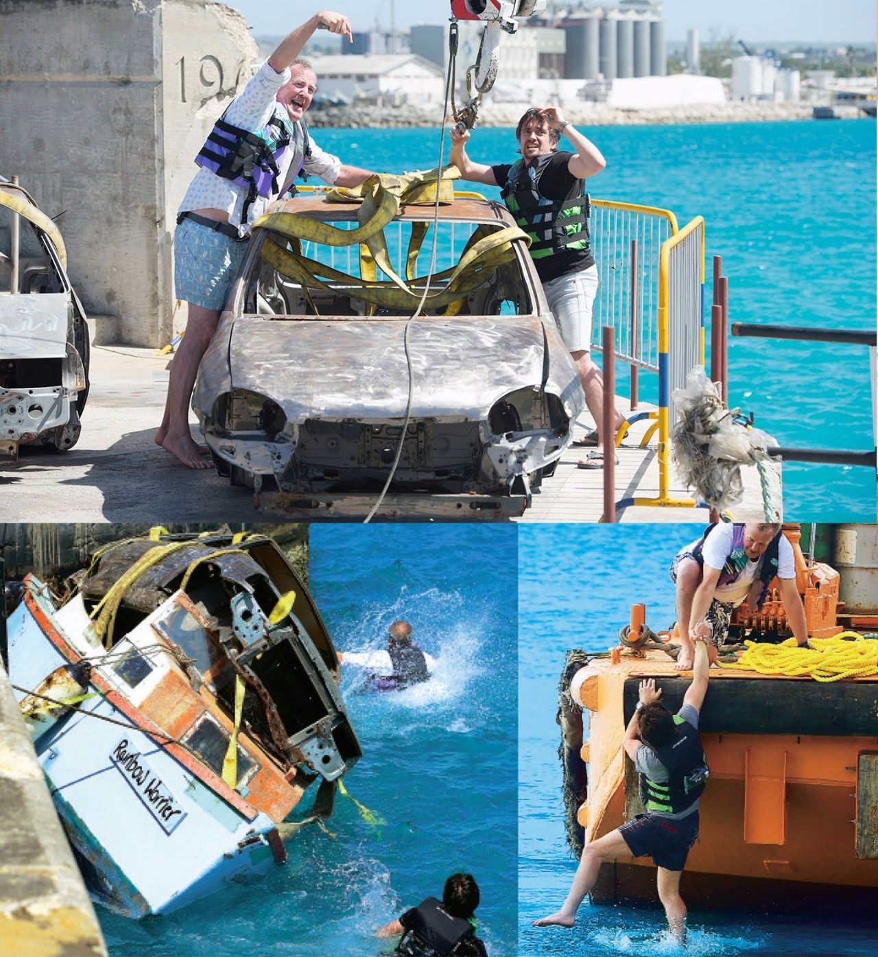 哐哐铛铛 Clarkson和Hammond想出一个点子,他们想沉一些车到巴巴多斯的海底造出一个人造海礁。但是事与愿违,他们的“车渡轮”翻了所以他们能尽情喝水了