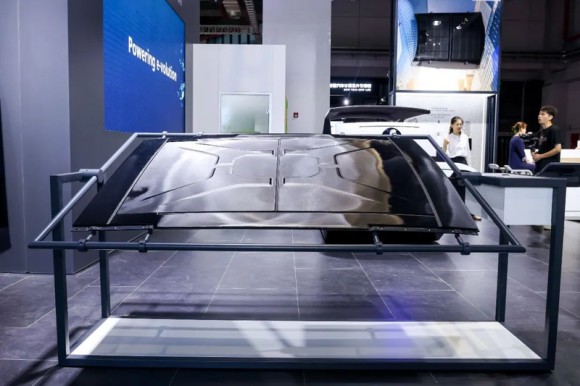 该款太阳能车顶可以发电,可以把电存储到动力电池系统里,还集成了智能可调光功能,可以达到遮阳的效果。