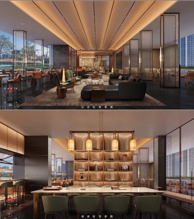 整体设计注重建筑与自然环境的融合,强调品质生活,休闲、交流、运动、会客,酒店式体验的主题。有氧健身区内选用的健身器材均来自美国高端品牌MATRIX。未来业主有亲友来访,可以在隐山会馆邻里会客厅内畅聊、饮茶、互动。
