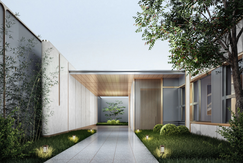 小区整体在景观和归家仪式上,也有特别的设计。景观方面,会有酒店式归家主轴、中央景观会客厅等。