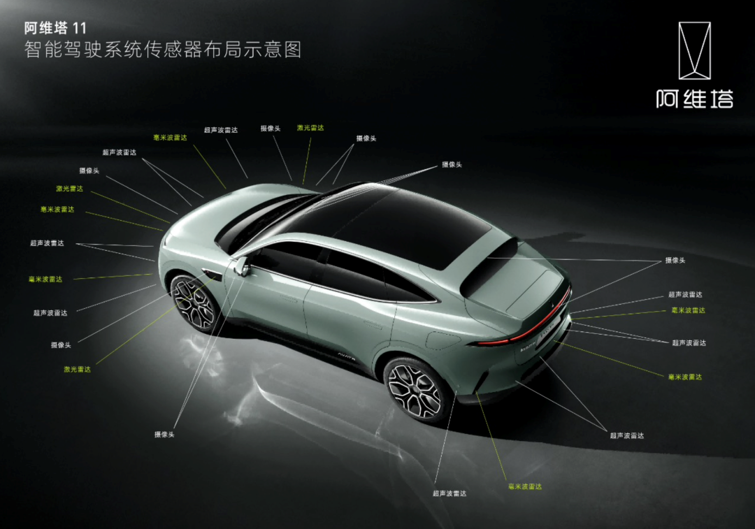 无论是单电机版还是双电机版,阿维塔11均全系标配3颗激光雷达、34颗智驾传感器,真正做到了“标配即满配”,并且是目前唯一全系标配HI华为智能汽车解决方案的车型。与此同时,阿维塔在高阶智驾包的订阅模式上同样展现了品牌的诚意。