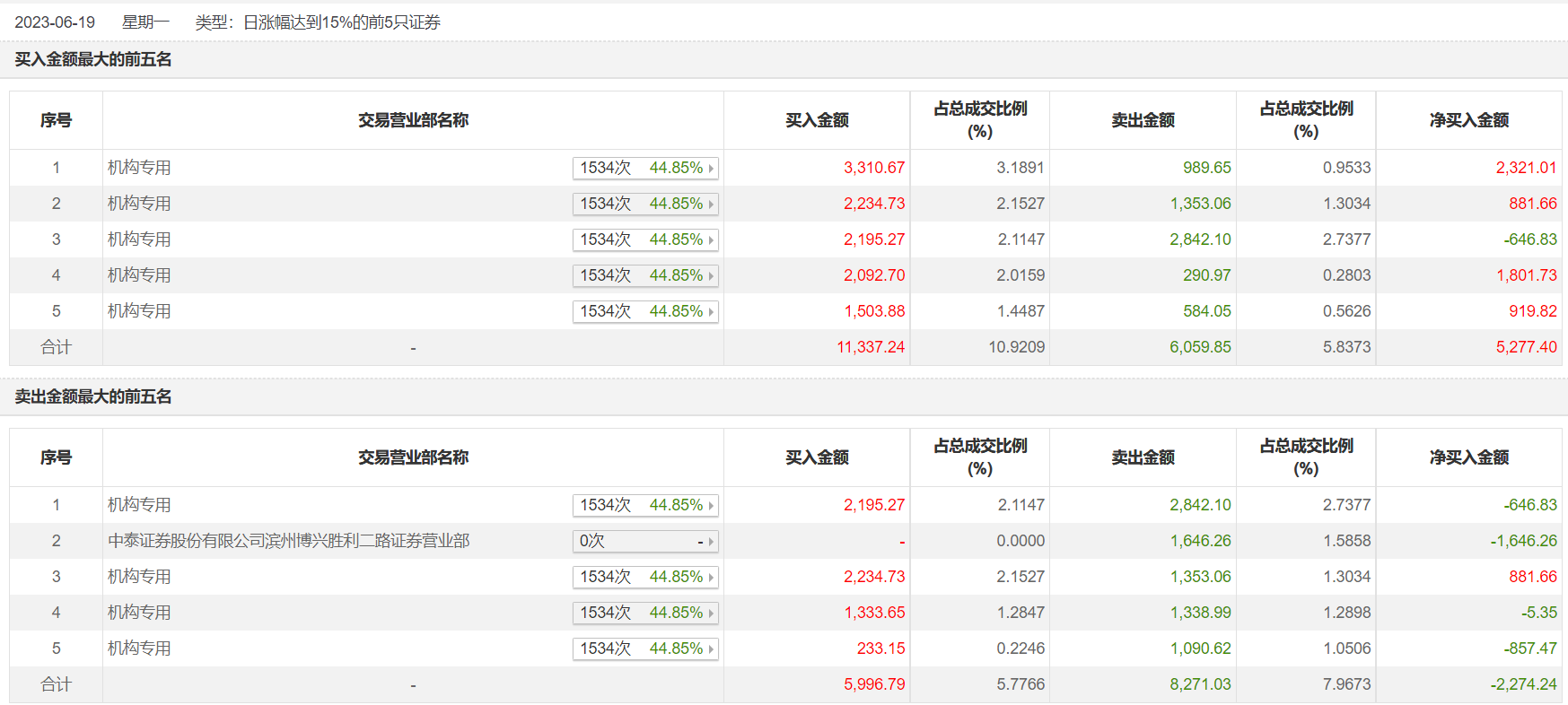 具体来看,机构买入1.29亿元,卖出8489.46万元,合计净买入4414.58万元。此外,中泰证券滨州博兴胜利二路证券营业部分别卖出1646.26万元。