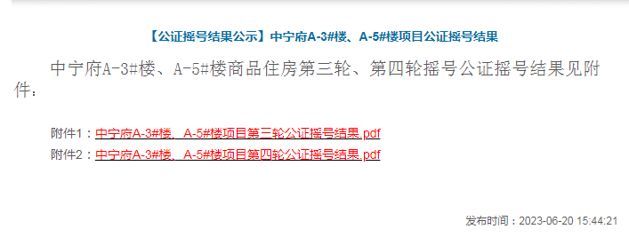 据南京公证处显示,今日下午青奥滨江板块的顶豪项目-中宁府摇号结束,共301组摇110套房源,中签率36.5%,项目将于明日(6月21日)开盘加推。