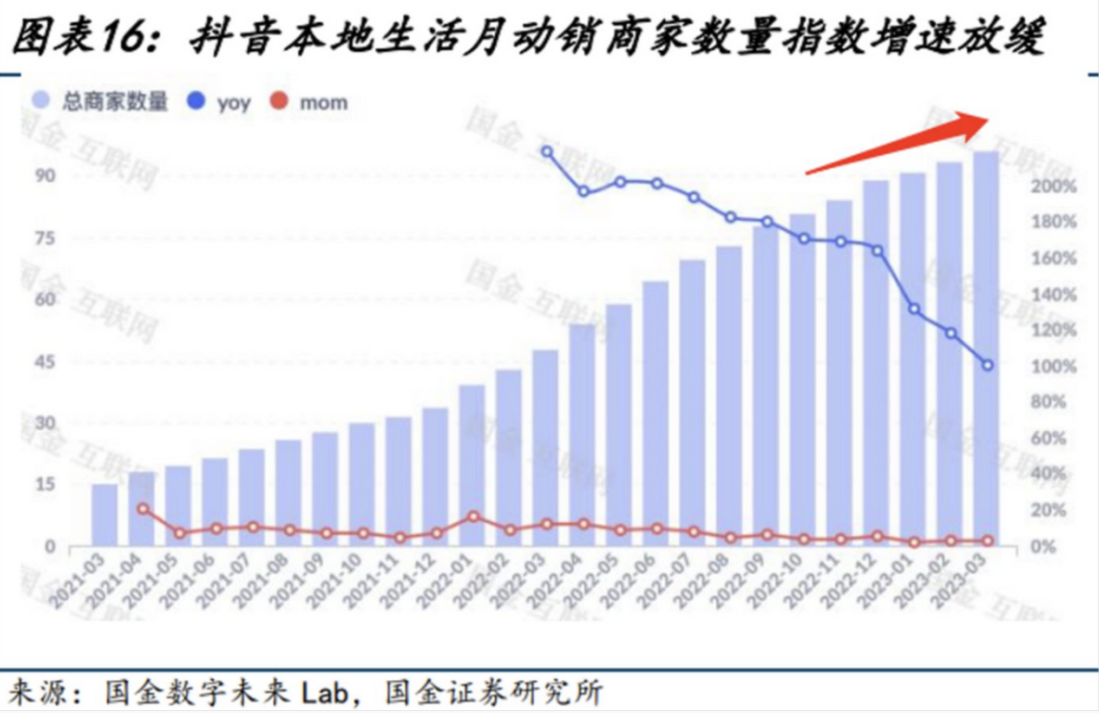 2022年,抖音本地生活业务的广告收入仅占美团核心商业板块在线营销收入的27%,但2023年第一季度这一比例已飙升至49%。