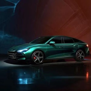来到车身侧面,豹跃肩线+ Fastback溜背设计的设计,让中国品牌遛背轿跑来到了一个新的设计高度。第一段肩线顺接日行灯,跨越前轮包顶点后向下坠落,于后门处又快速上挑,衔接后三角窗;第二段从后门把手开始,向后微微下坠的同时与C柱形成了显著的形面落差,强健的后肩由此形成。