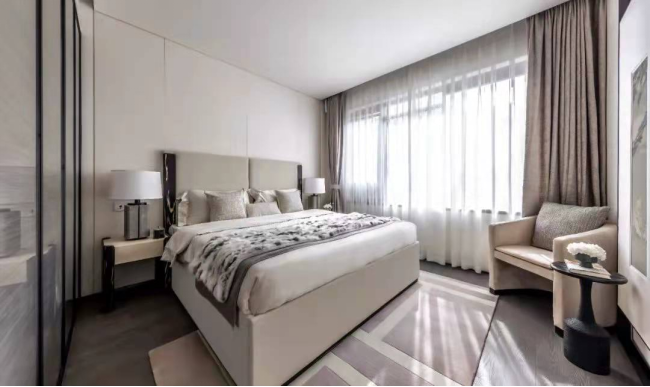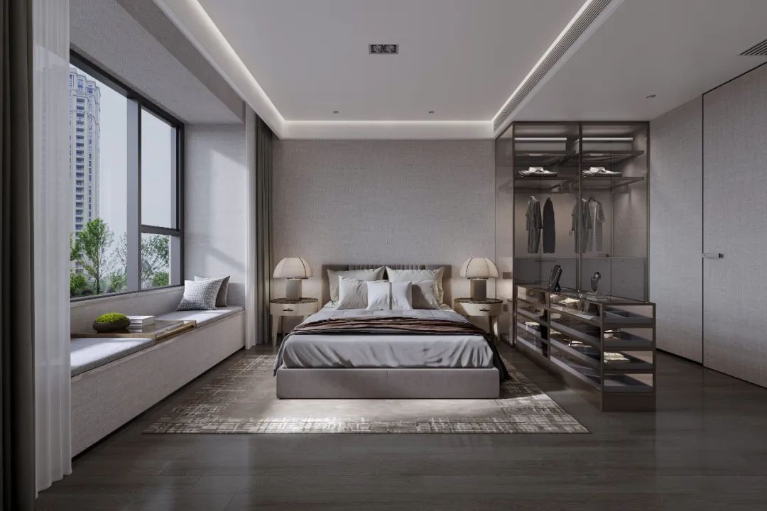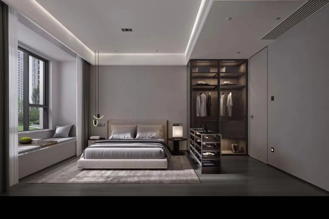 另外,全屋还设计了智能家居系统,一个面板便捷实现智能灯控、温控,以及客餐厅+主卧双轨道电动窗帘。
