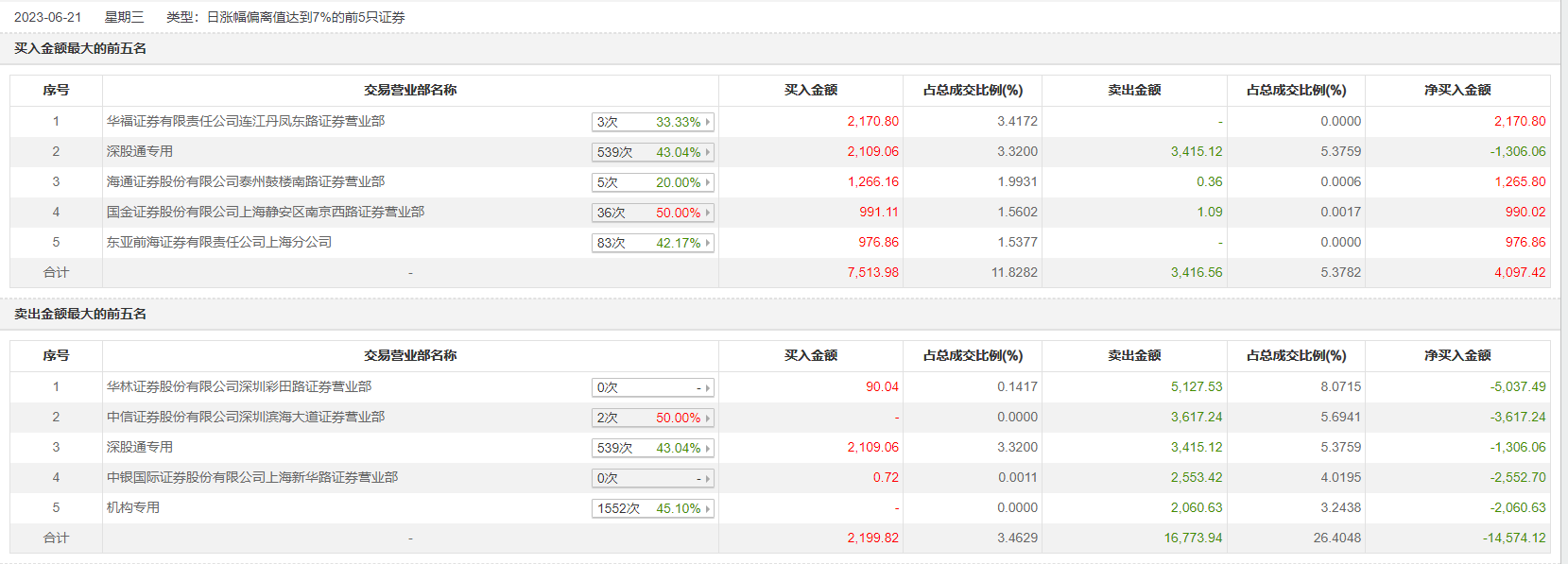 具体来看,机构合计净卖出2060.63万元。此外,华福证券连江丹凤东路证券营业部、深股通专用分别买入2170.80万元、2109.06万元;华林证券深圳彩田路证券营业部、中信证券深圳滨海大道证券营业部分别卖出5127.53万元、3617.24万元。