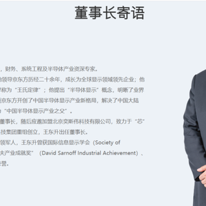 在一次公开论坛上,王东升曾分享:一个企业如果一直靠创始人做到底,不能算成功,创始人不在的时候仍然发展得很好,这才是真正的成功。所以,他的第一个梦想就是要把京东方交出去,下一代能够比他干得更好;而第二个梦想,就是做集成电路。