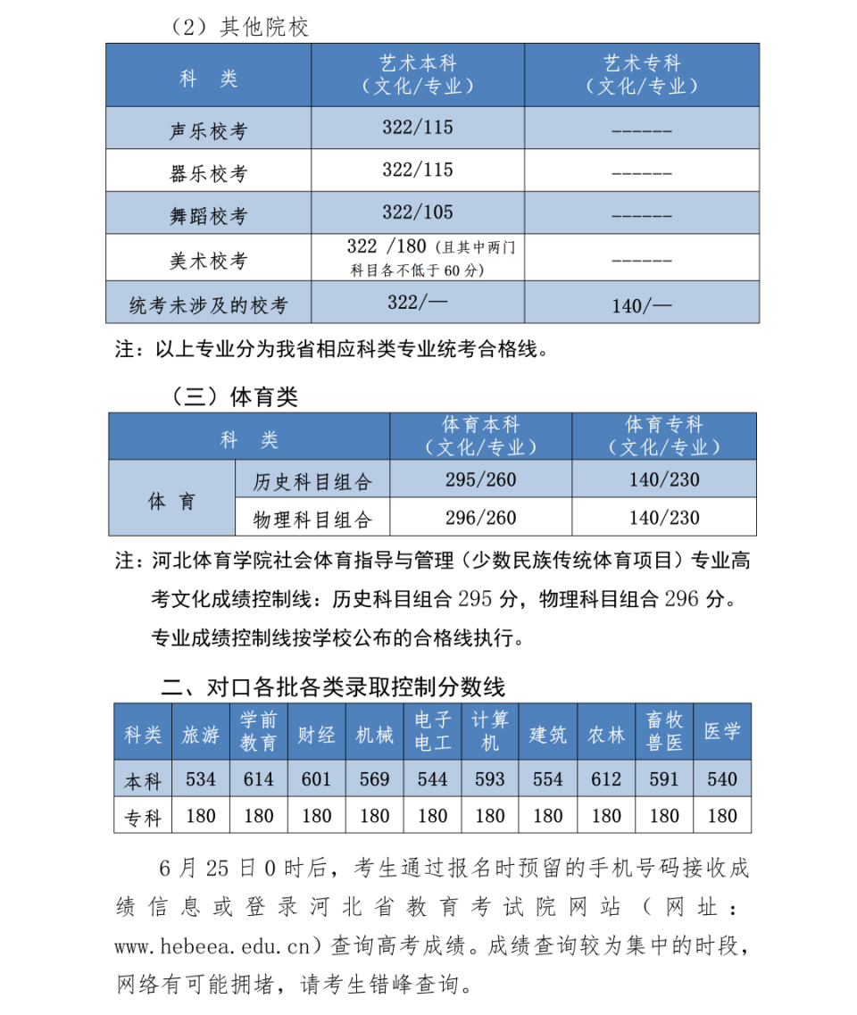 河北省教育考试院官微6月24日公布2023年河北省普通高校招生各批各类录取控制分数线,具体如图。