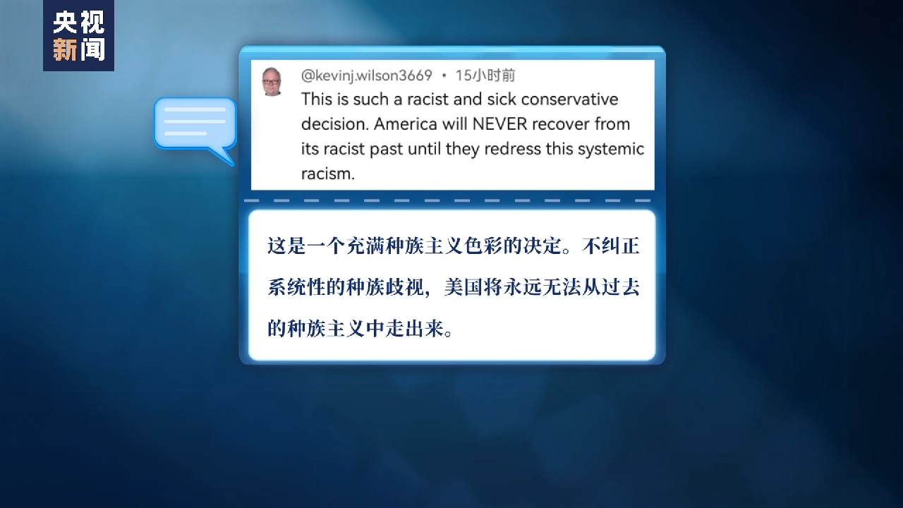 还有不少网友认为,最高法院的这一裁定充斥着浓厚的“种族主义”色彩,“不纠正系统性的种族歧视,美国将永远无法从过去的种族主义中走出来。”