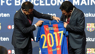 北京时间11月16日晚21时,巴塞罗那俱乐部召开新闻发布会,宣布来自日本的乐天株式会社(下称“乐天”)将从2017-18赛季开始正式成为球队主赞助商,该公司的LOGO将出现在巴萨球衣的胸前。据西班牙媒体透露,双方将签约四年,乐天每年将向巴萨支付高达6000万欧元的赞助费,红蓝军团从而超越曼联(雪佛兰5400万欧元)和切尔西(横滨轮胎 4400万欧)成为世界上胸前广告赞助费最高的球队。