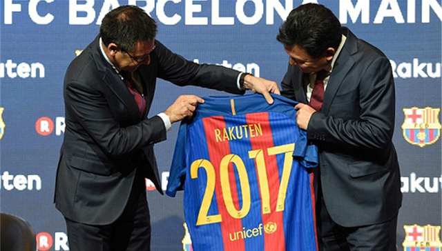 巴萨主席巴托梅乌表示:“2015年皮克组织安排在乐天株式会社CEO三木谷浩史位于旧金山的家里一起吃饭,那时起我们开始考虑其作为全球赞助商的可能性。乐天株式会社是一家年轻有活力,现代又尖端的企业。”