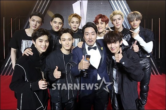 8. 小鲜肉和帅大叔:赵震雄和偶像男团EXO在一起。