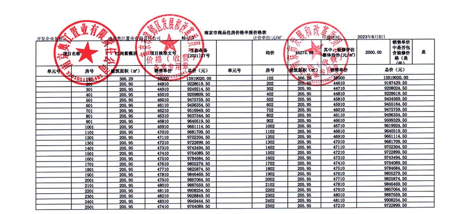 6月20日,江心洲江尚紫薇新领取3号楼销许,共50套房源,户型建面约206㎡,销许均价约44839元/㎡,另有3800元/㎡升级装修包,首付3成起,验资150万。