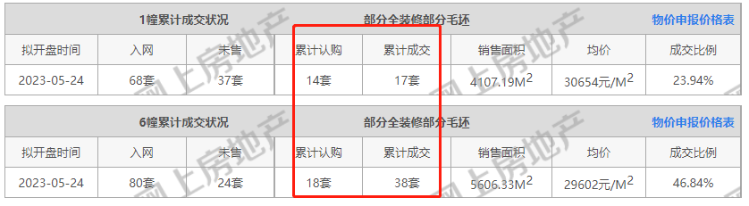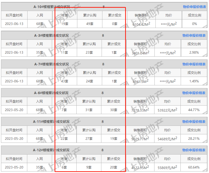 当时共434组摇100套房源,综合中签率23%,平均4人抢1套房,其中普通号中签率低至12.3%。根据网上房地产显示,首开的100套房源目前累计认购63套,去化63%。